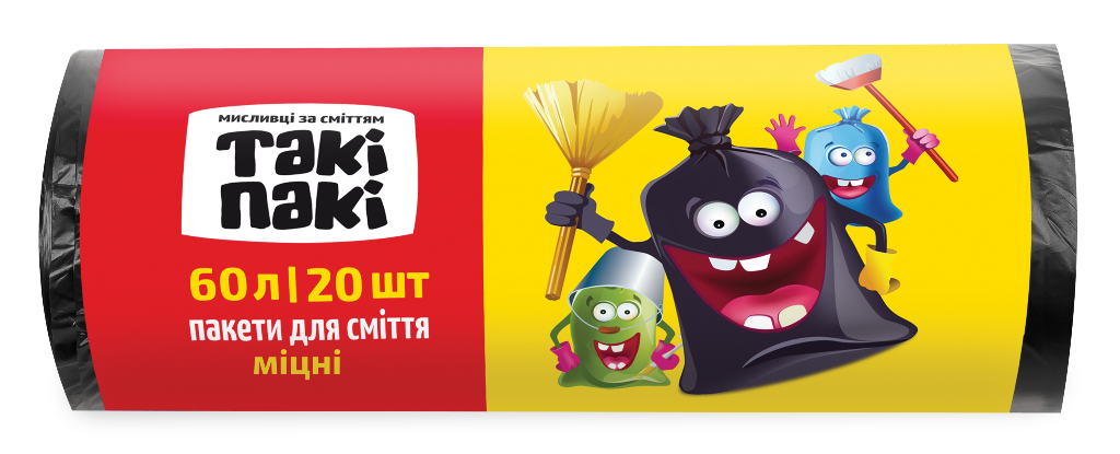Пакеты для мусора Таки Паки 60 л 20 шт Крепкие Человеческая деятельность всегда влечет за собой появление разнообразного мусора с отходами, которые необходимо собирать и подвергнуть утилизации. Появление мусора всегда будет сопровождать человека – при хозяйственной работе дома, в офисе, при любом производстве или строительстве. И только пакеты для мусора эффективно облегчают уборку с дальнейшим вывозом различных отходов. Пакеты для мусора Таки Паки крепкие 60л(20), 15 мкм, размер 600*720. LDPE Пакеты для мусора объемом 60 литров используются в баках для мусора и отдельно от них. Области применения: в баре или на кухне ресторана, на тележках гостиничных горничных или клининговой службы, с другими емкостями для мусора большого размера.