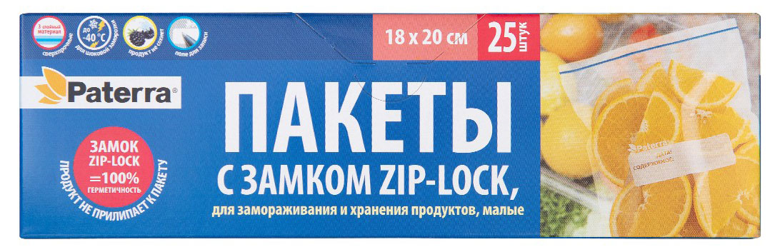 Идеальны для любых продуктов. Сверхпрочные пакеты с трехслойными стенками выдерживают даже шоковую заморозку. Герметичный и удобный замок Zip-Lock позволяет многократно открывать и закрывать пакет. На поле для записи можно зафиксировать дату и содержимое пакета. Размер: 18 х 20 см. 25 шт. в упаковке.
