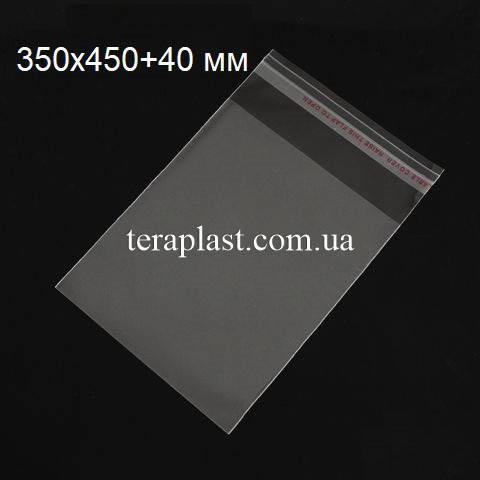 Пакеты полипропиленовые 350х450+40мм, 25мкм с клейкой лентой (100шт), Прозрачный