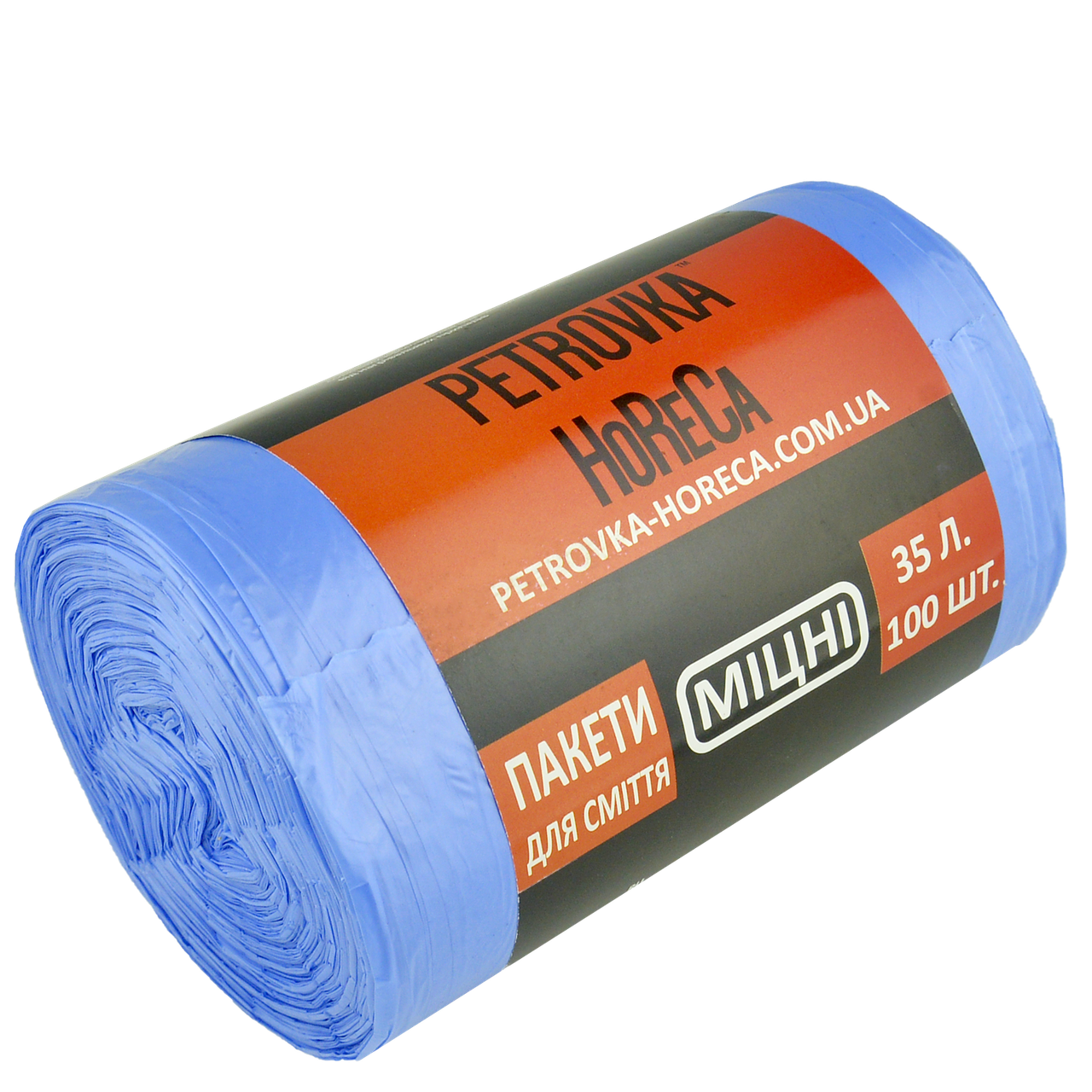 Мусорные пакеты "PETROVKA HoReCa" – универсальный контейнер утилизации пищевых, бытовых отходов. Объем в 35литров – оптимальный вариант между малыми и большими кульками, которые подходят для ведер от 7 до 15литров.