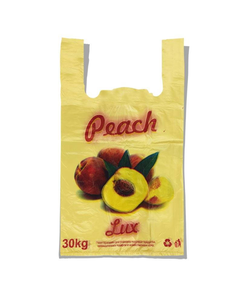 Пакет-майка "Персик" 28х46см - универсальный полиэтиленовый пакет, который используется для упаковки и хранения продуктов питания, а также различных непродовольственных товаров. Пакеты изготовлены из полиэтилена, благодаря чему отличаются относительной дешевизной. Изделие характеризуется повышенной прочностью, максимальная нагрузка составляет 30 кг. Благодаря удобной форме, а также хорошей прочности, пакеты можно использовать для транспортировки многих, в том числе сыпучих, видов товаров. Пакет выполнен с изображением Персика и надписью Peach. Количество пакетов в одной упаковке - 250шт.
