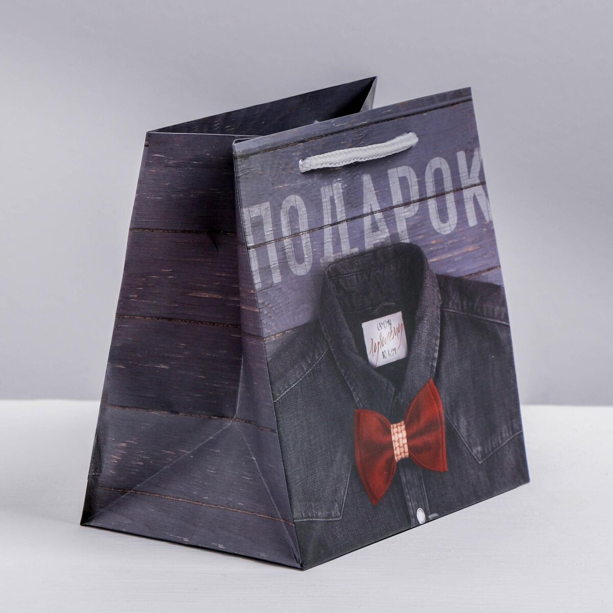 Пакет подарочный ламинированный квадратный, упаковка, «Мужской стиль», 14 х 14 х 9 см.