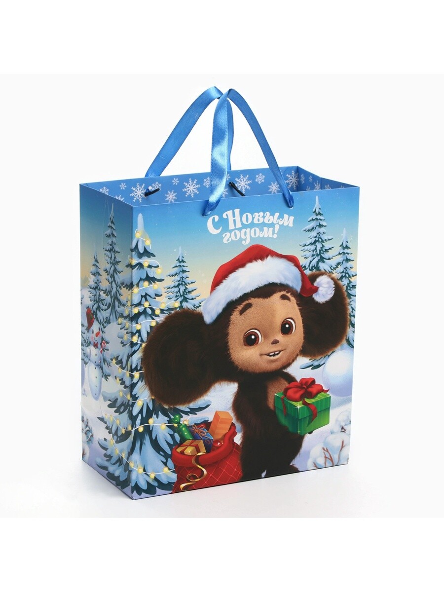 Пакет подарочный новогодний «С Новым годом!», 23×27×11.5 см, упаковка, Чебурашка.