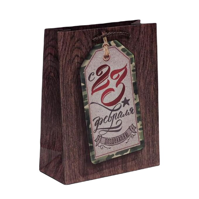 Пакет 18 x 23 x 8 см Дарите Счастье Поздравляю с 23 февраля, Коричневый