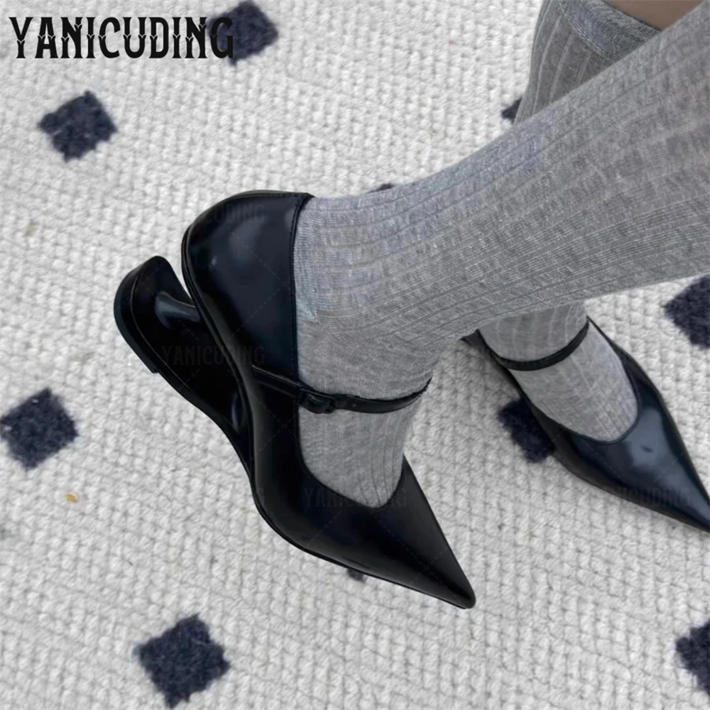 Sculptural Cutout Heel Sneakers Pointed Toe Wedge Mary Jane Shoes Novelty Designer Style High Heel Casual Shoes Red Silver Black
