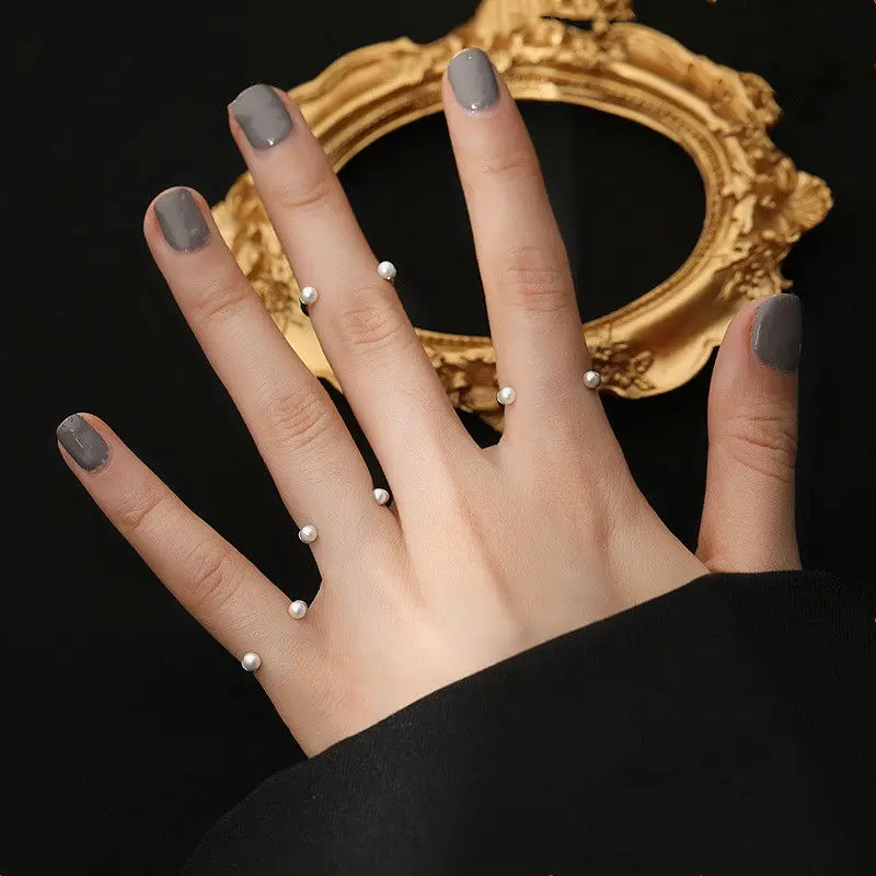 Pearl Opening Adjustable Ring Set Fashion Sweet Cute Jewelry Women Girl Index Finger Ring for Lady Party Wedding Gifts