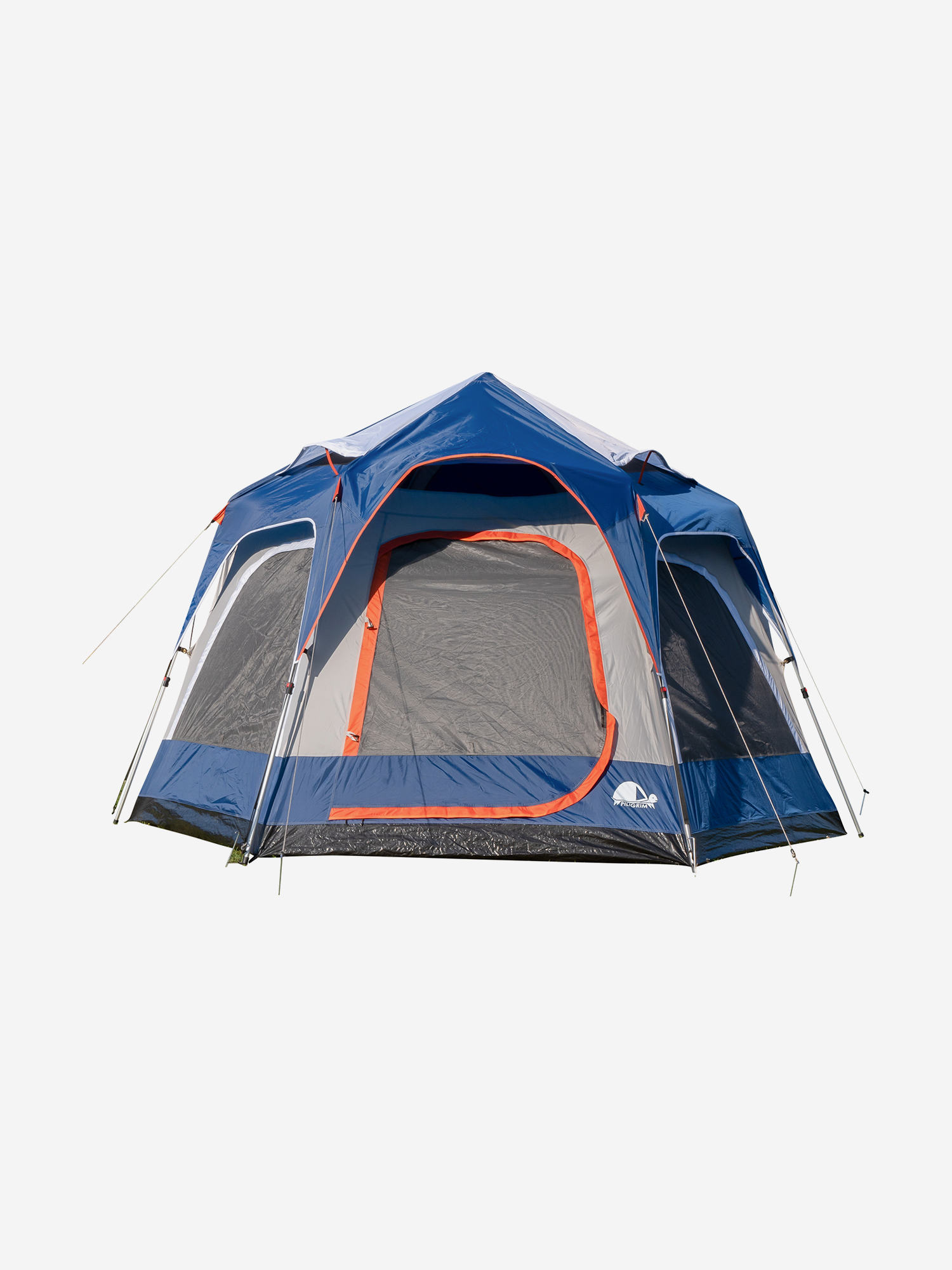 Просторная 6-местная полуавтоматическая туристическая палатка для комфортного отдыха на природе при любой погоде.