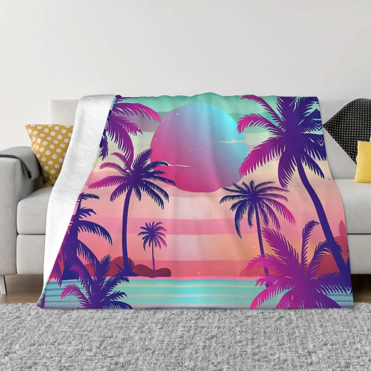 Пальмовые деревья, натуральное пляжное одеяло, Фланелевое удобное мягкое флисовое покрывало Vaporwave