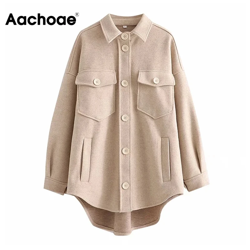 Пальто женское Шерстяное однотонное на пуговицах с длинным рукавом и карманами