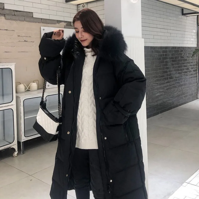 Пальто женское зимнее, оверсайз, с меховым капюшоном, теплая, с большими карманами