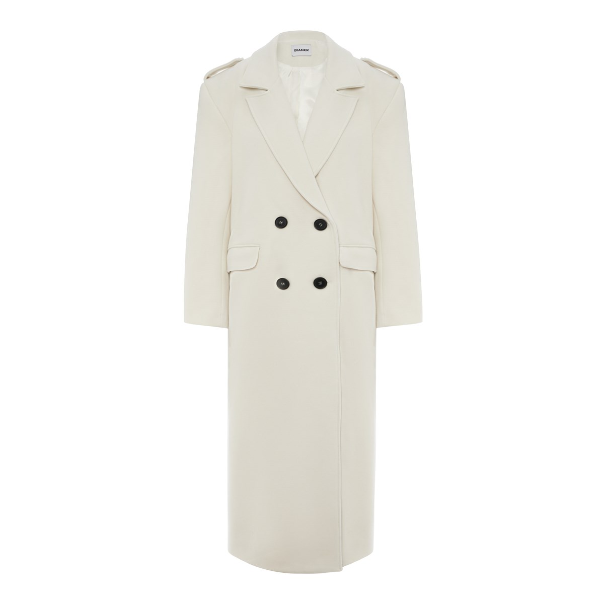 Двубортное пальто Glera в молочном оттенке, прямого кроя с расширенной линией плеча. Модель воплощающая в себе элегантность и строгость. Температурный режим: от +10 до -7 °С.