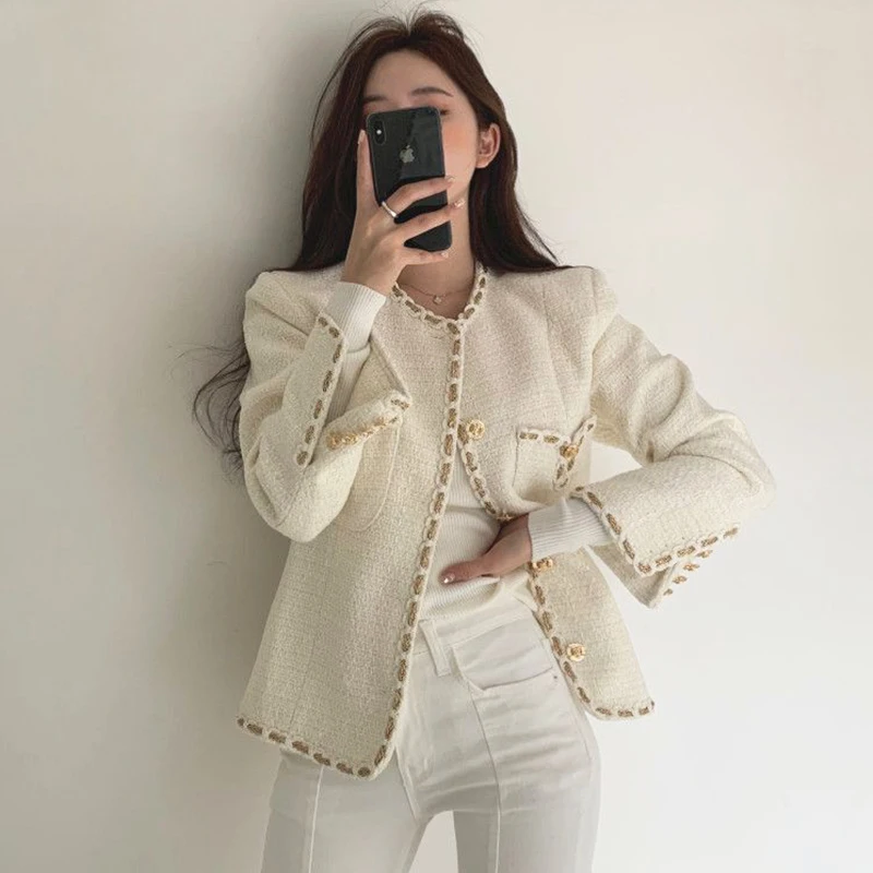 Пальто из твида, однобортное, с длинным рукавом, в Корейском стиле, для офиса, Осень-зима, 2020