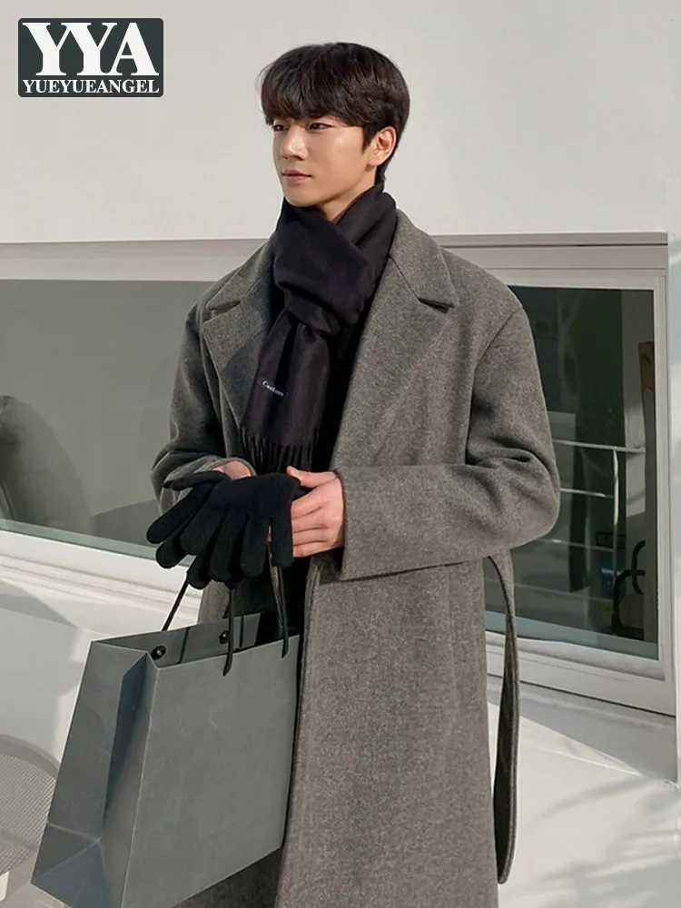 Пальто мужское шерстяное однобортное, длинное Прямое пальто с поясом, Офисная верхняя одежда, для осени и зимы