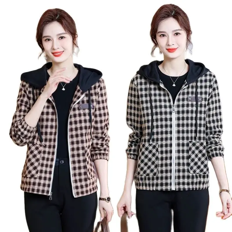 Пальто с капюшоном для женщин, весна-осень 2023, новая Корейская версия, короткое пальто для мам, женская куртка для женщин среднего возраста