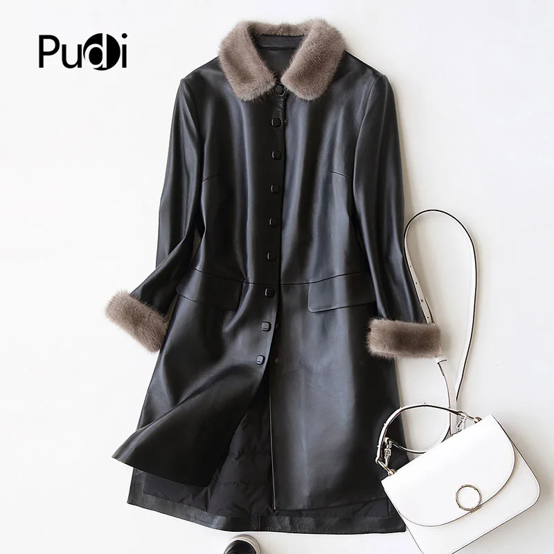Пальто PUDI A27953 из настоящей овечьей шкуры, пальто, Женское зимнее теплое пальто из меха норки, зимнее пальто из натуральной кожи внутри