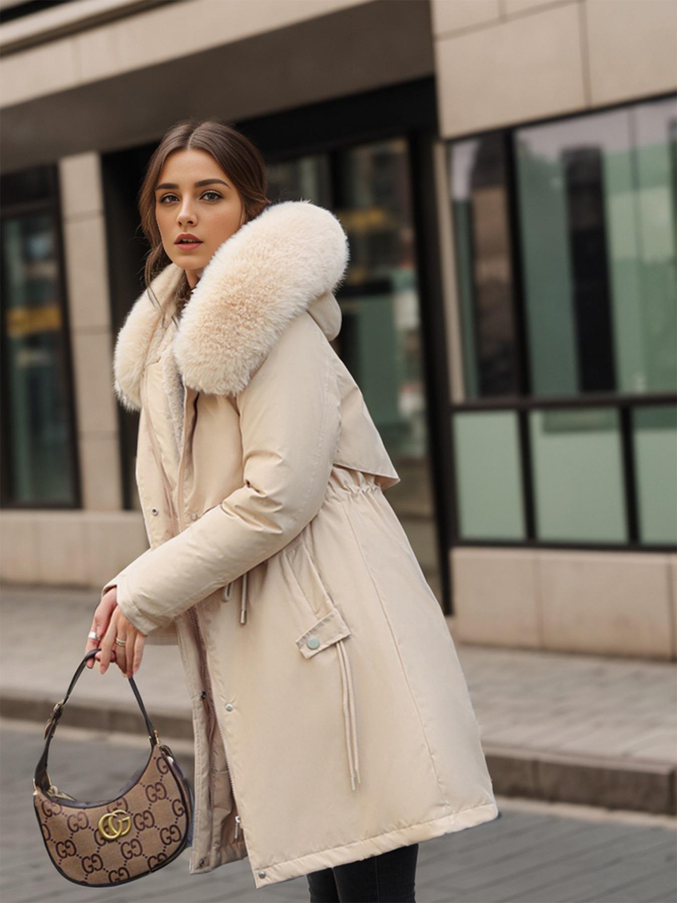 Пальто Parkers с капюшоном и воротником, пальто из овечьей шерсти и хлопка на молнии, средней длины, теплое и пушистое пальто для зимнего сезона с хлопковой курткой L белый