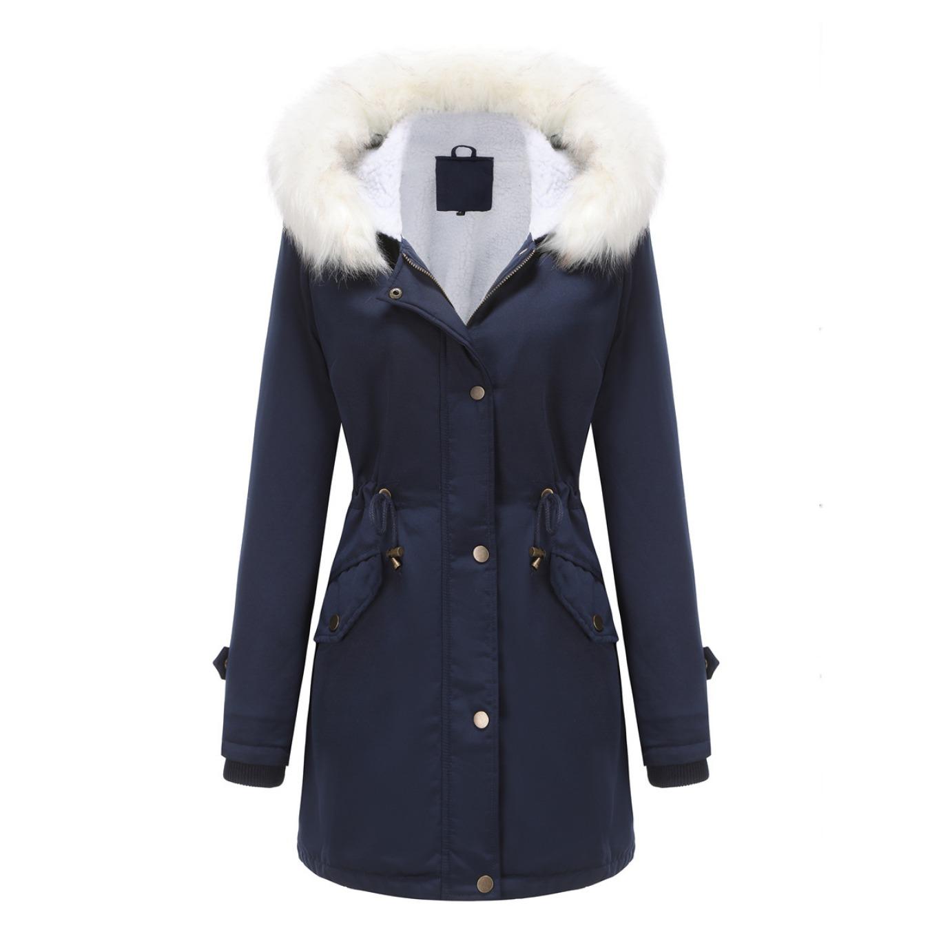 Пальто Parkers с капюшоном и воротником, пальто из овечьей шерсти и хлопка на молнии, средней длины, теплое и пушистое пальто для зимнего сезона с хлопковой курткой 4XL темно-синий