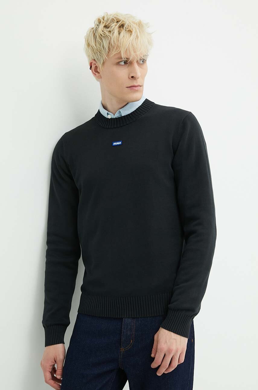 Памучен пуловер Hugo Blue в черно от лека материя 50514698, Черен