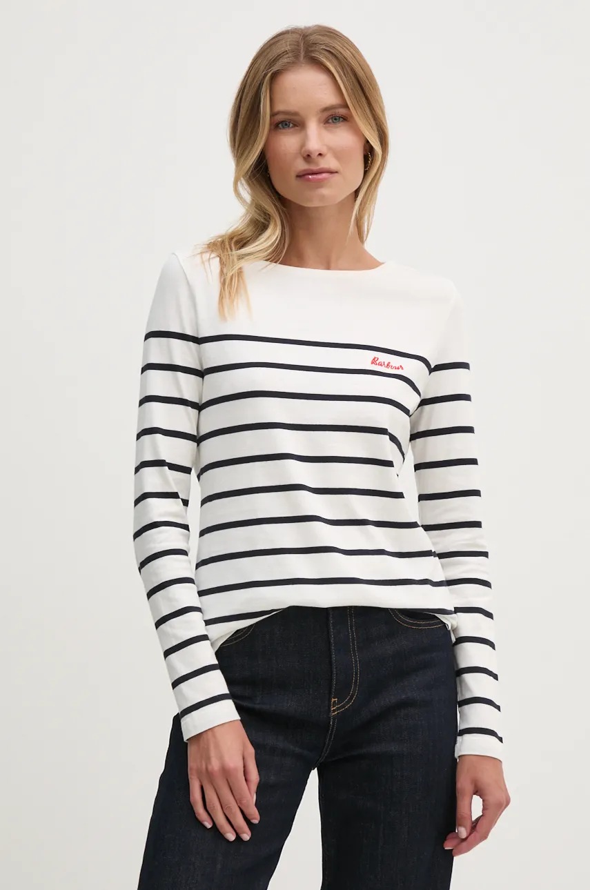 Памучна блуза с дълги ръкави Barbour в тъмносиньо LML0704, Бял