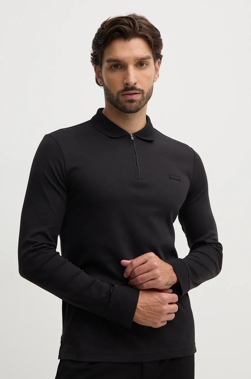 Памучна блуза с дълги ръкави Calvin Klein в черно с изчистен дизайн K10K113586, Черен