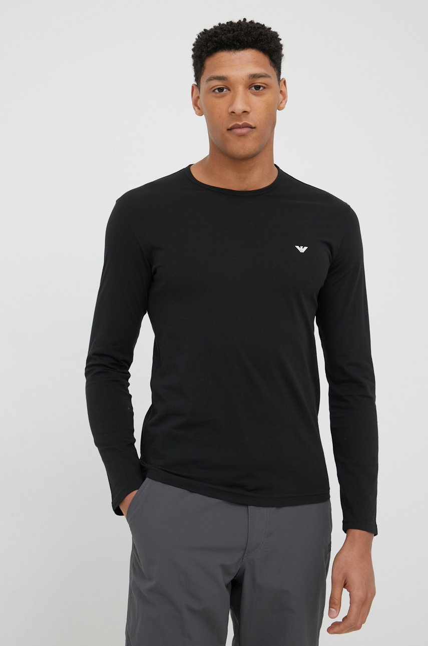 Памучна блуза с дълги ръкави Emporio Armani Underwear в черно с изчистен дизайн, Черен