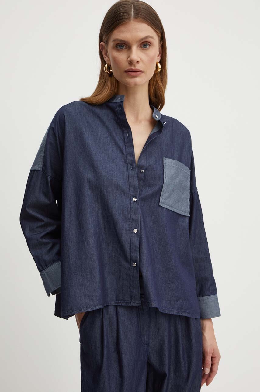Памучна риза MAX&Co. дамска в тъмносиньо със свободна кройка 2416111043200, Тъмносин