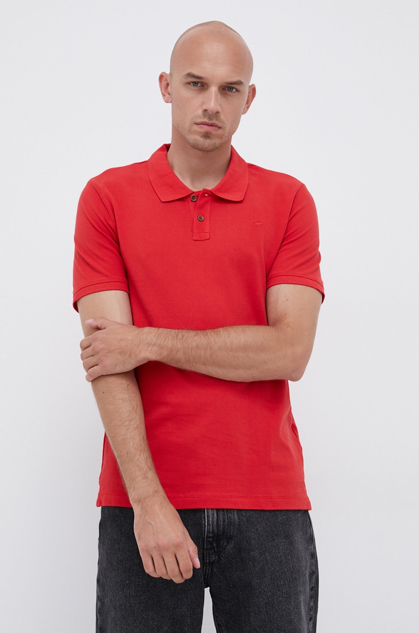 Памучна тениска с яка Mustang в червено с изчистен дизайн, Червен