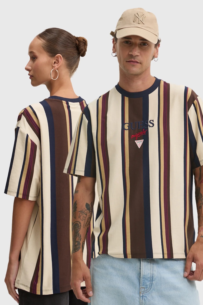 Тениска Guess Originals, направена от тънка и еластична материя. Модел от изключително удобна, дишаща памучна материя.- Този продукт е направен от сертифициран органичен памук, който се отглежда и събира от растения без ГМО и без използването на химически торове или пестициди.- Свободна кройка за пълна свобода на движение.- Овално рипсено деколте.- Къси ръкави.- Паднало рамо за свобода на движението.- Десен.- Бродирано лого отпред.- Дължина: 72 cm.- Ширина под мишниците: 58 cm.- Мерките се отнасят за размер: S.