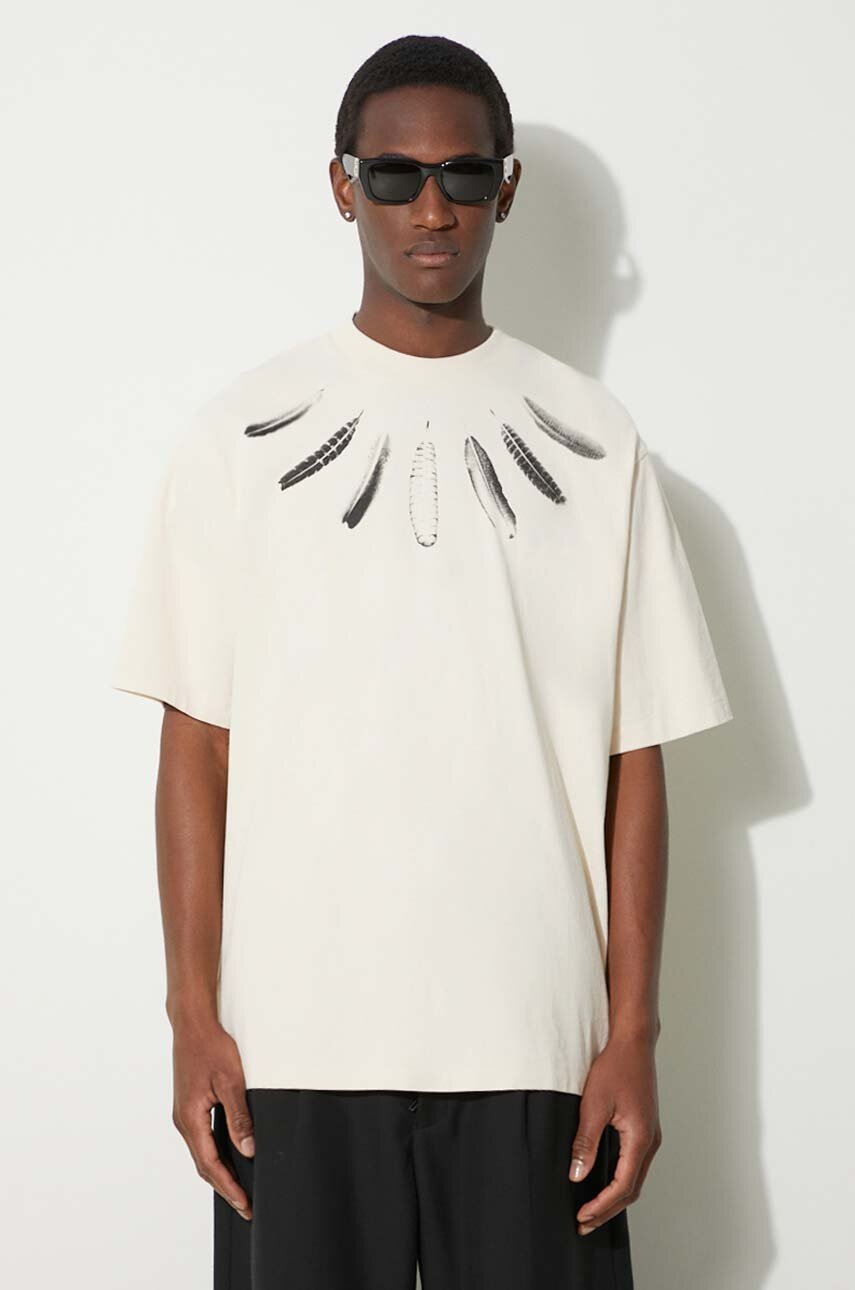 Памучна тениска Marcelo Burlon Collar Feathers Over в бежово с принт CMAA054S24JER0060C10, Бежов