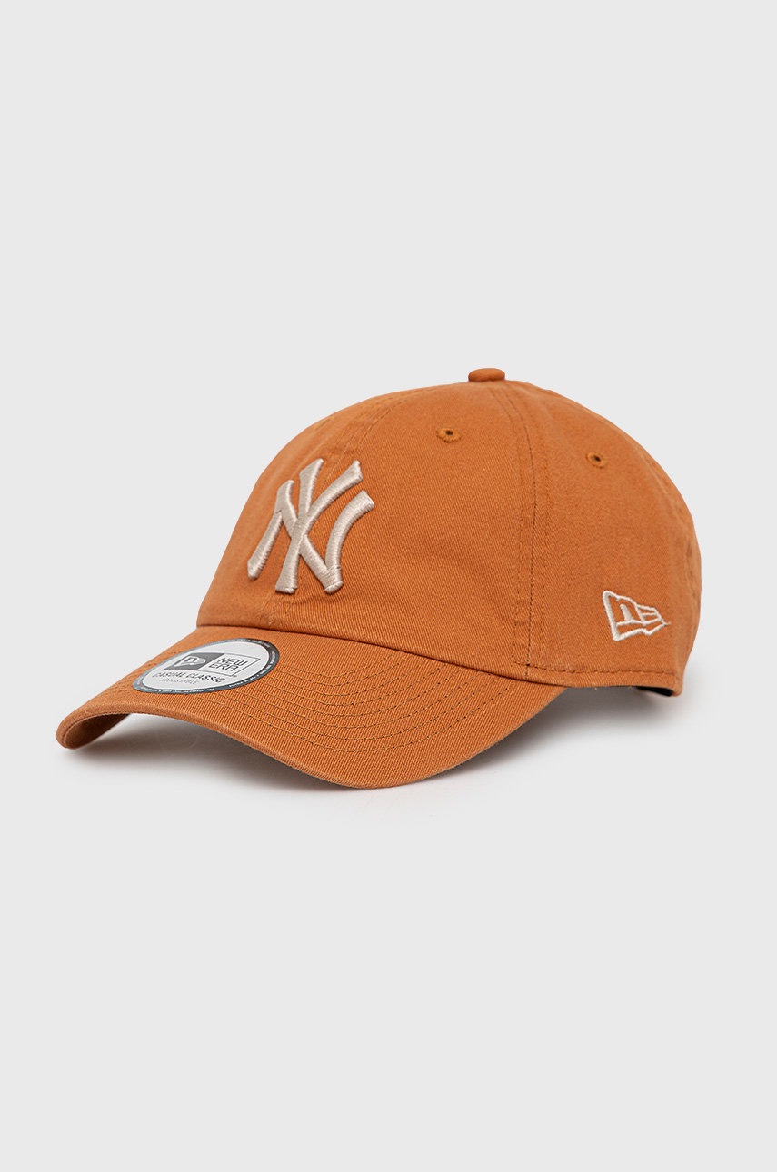 Памучна шапка New Era в кафяво с апликация, Кафяв