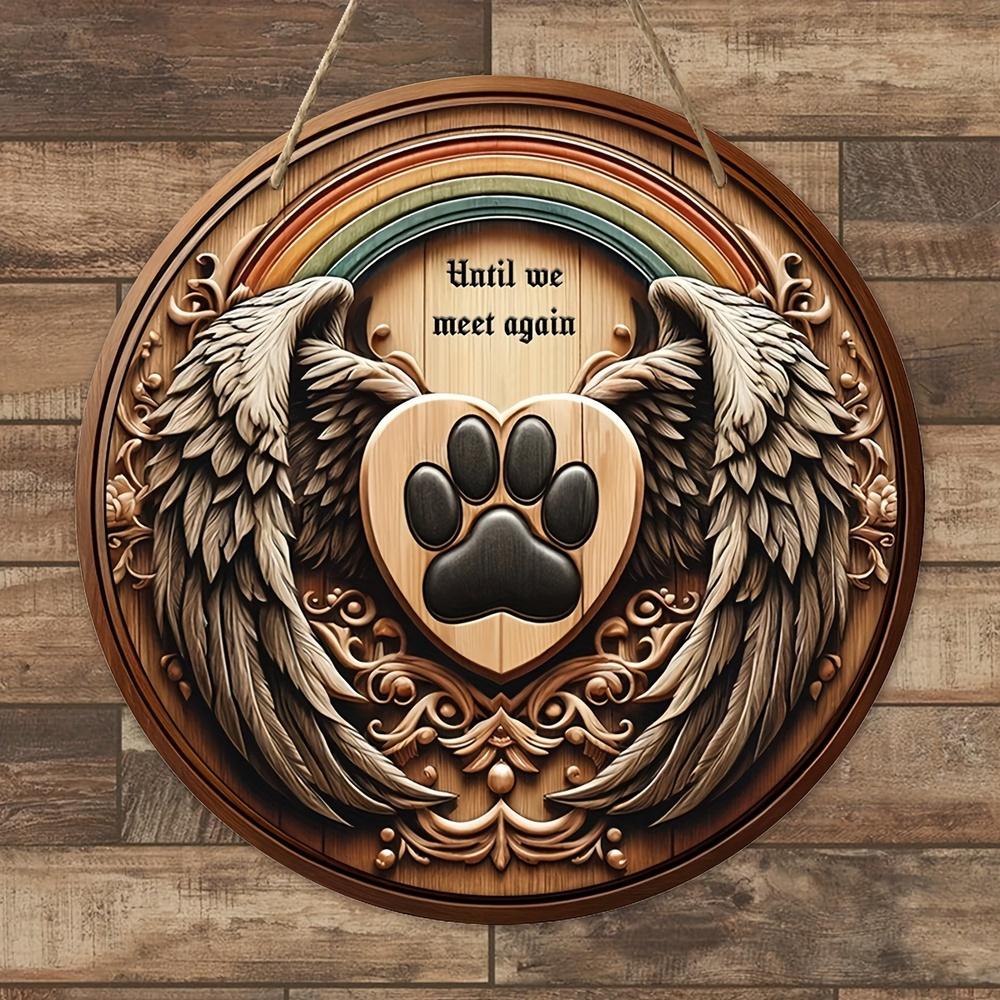 Памятный деревянный знак для питомца - Крылья ангела и отпечаток лапы, настенный декор для дома, сада, патио, входной двери церкви, идеальный декор для дома, комнаты