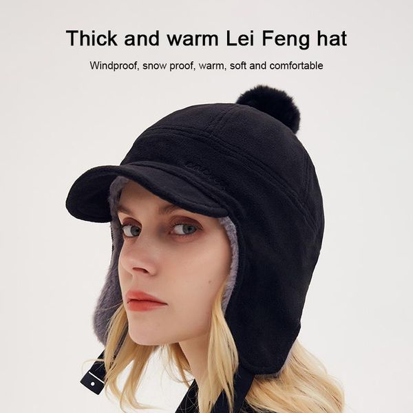 fashion winter warm windbreaker hats ear and windproof ski cap thick plush with removable face shield hat cycling caps & masks, Black