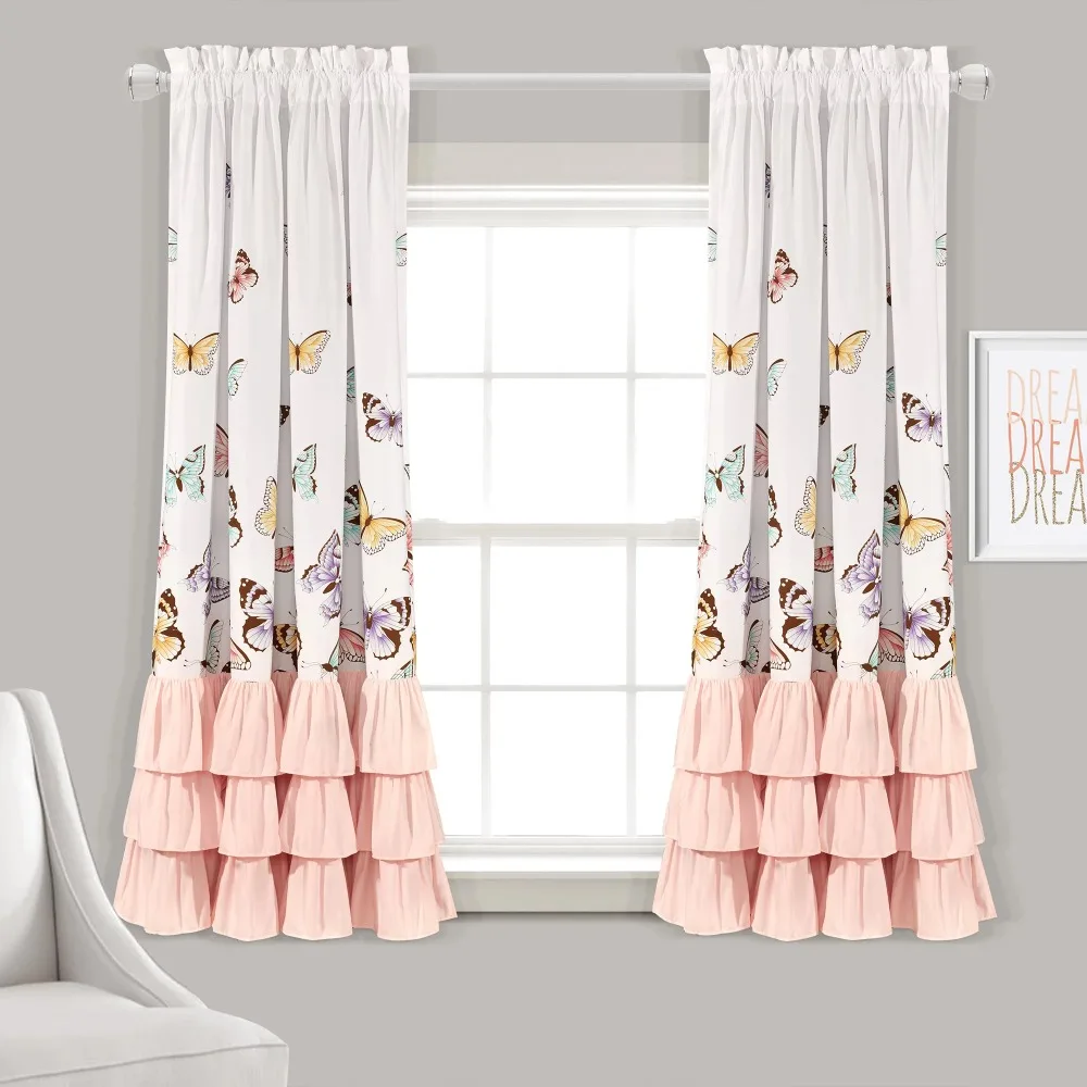 Панели для окон с оборками и бабочками-розовые-84X52 панели для окон с оборками и краями с рисунком животных машинная стирка