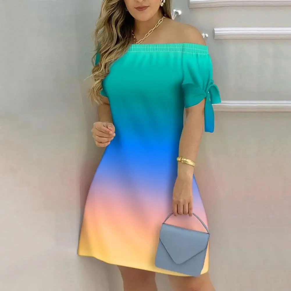 Женское платье с открытыми плечами, Элегантное летнее платье богатых цветов на шнуровке