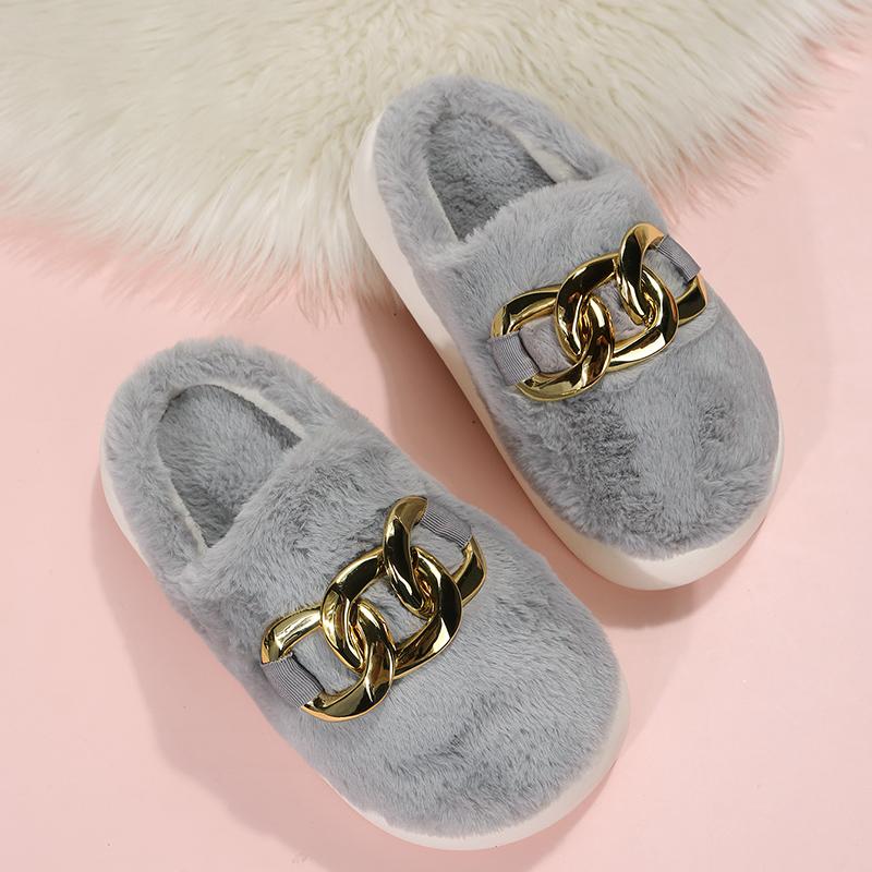 Панк-девушки цепные тапочки женские для дома и улицы слайды беззвучные туфли женские розово-белые мюли на платформе женские тапочки бесплатная доставка CN 36-37 серый