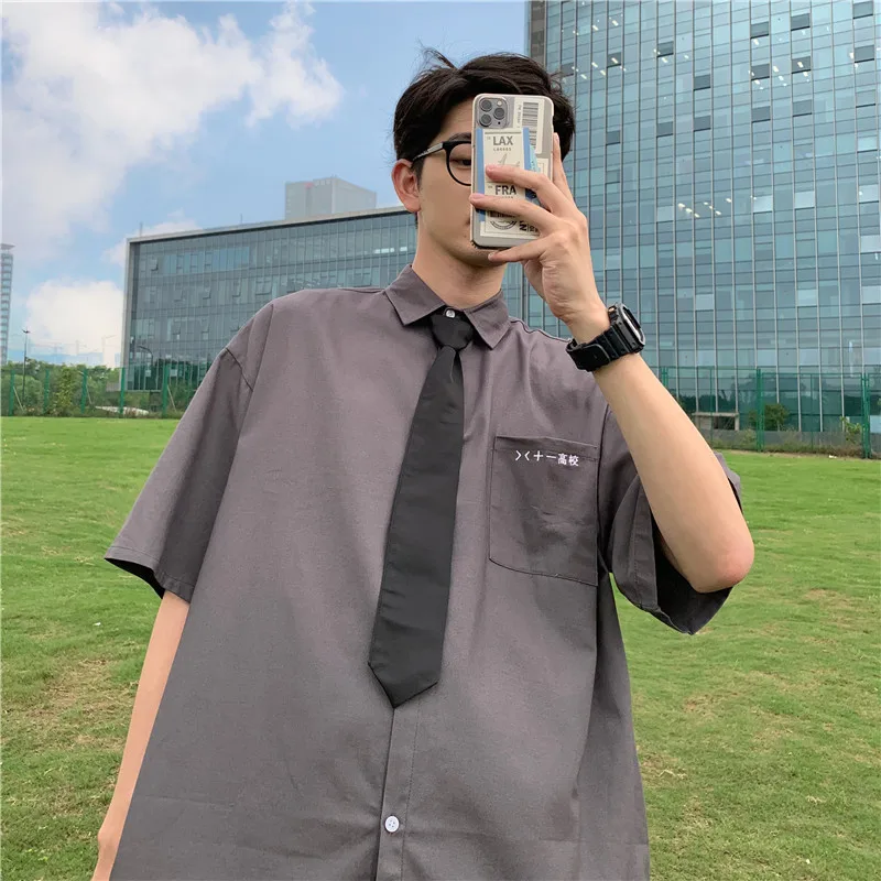 Japanese Short-sleeved Shirt Men's Korean Loose Business Casual Formal Shirt Harajuku Streetwear Couple Short-sleeved Shirt