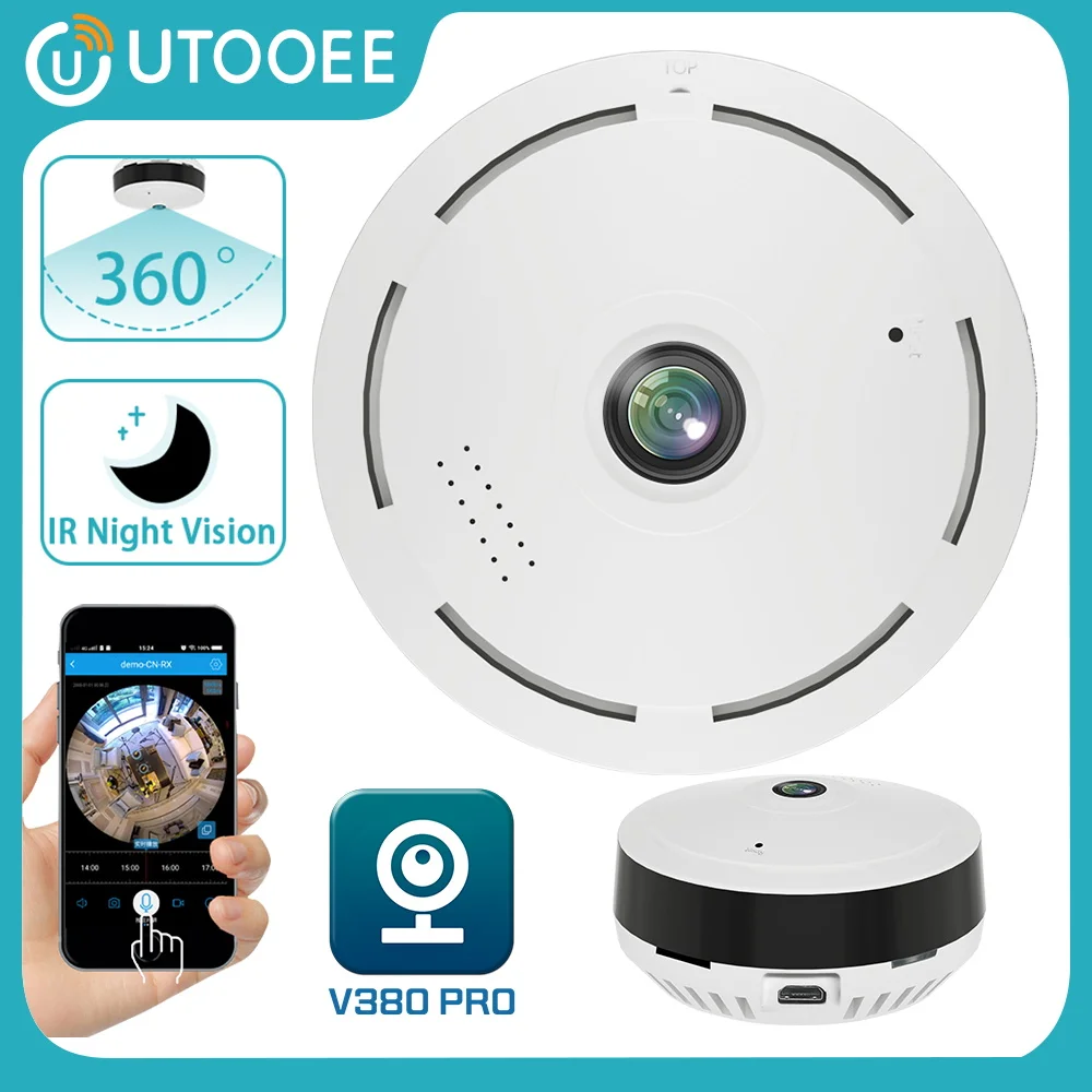 Панорамная камера видеонаблюдения UTOOEE, 4 МП, Wi-Fi, угол обзора 360 °, рыбий глаз, ИК-датчик движения, ночное видение, V380 PRO