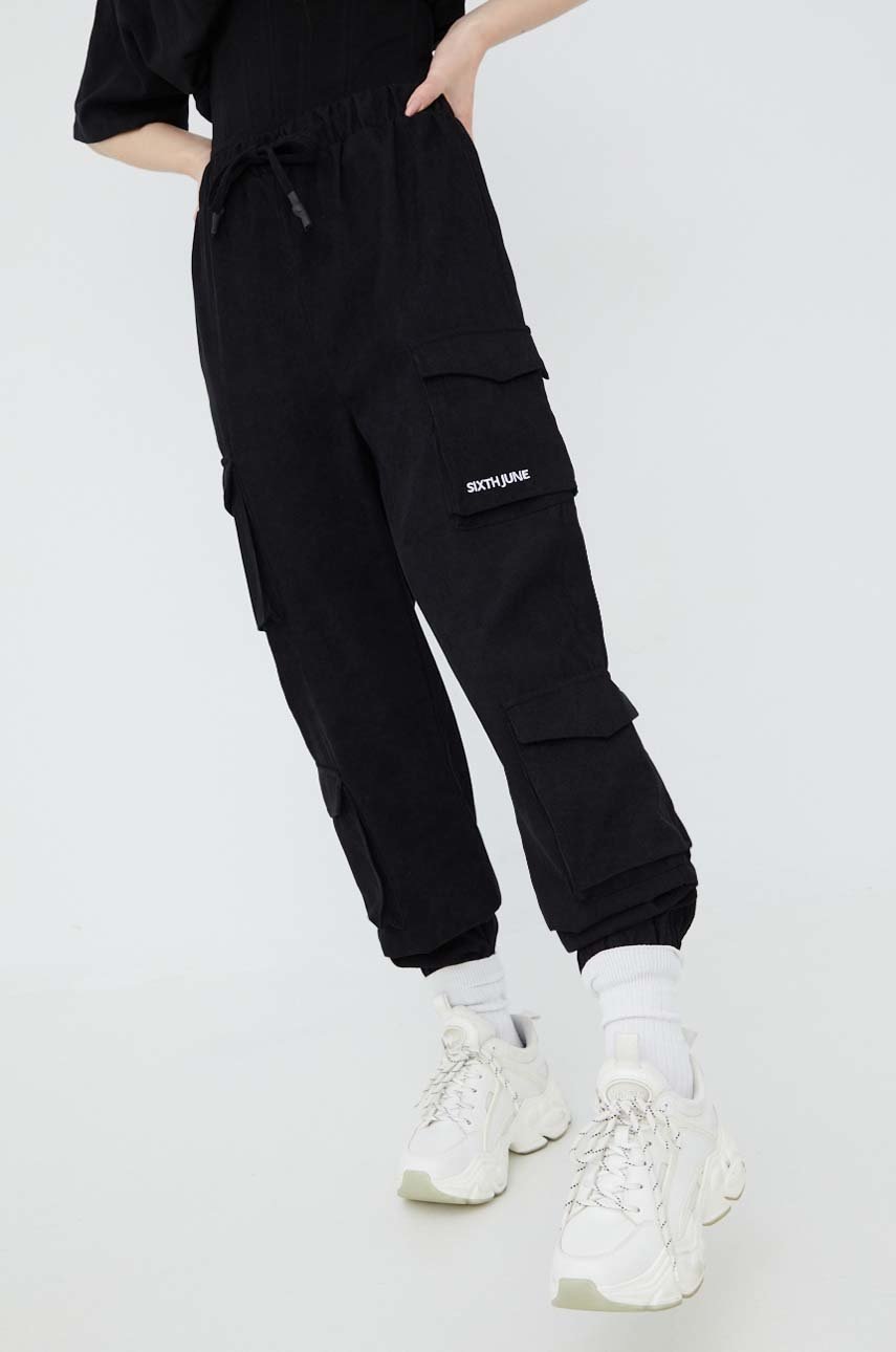 Панталони Sixth June в черно с кройка тип карго, с висока талия, Черен