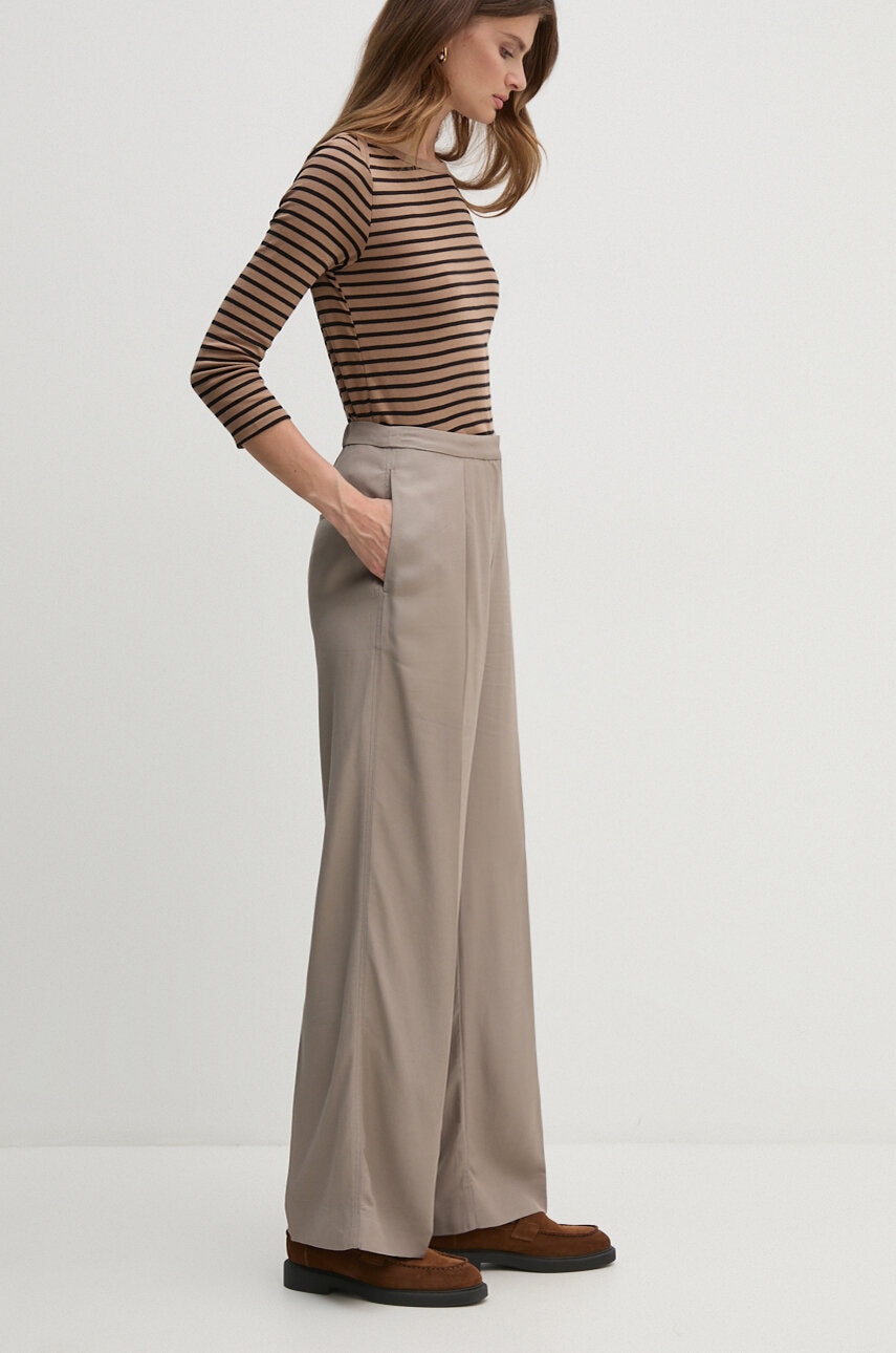 Панталон с лен Calvin Klein в бежово с широка каройка, с висока талия K20K207641, Бежов
