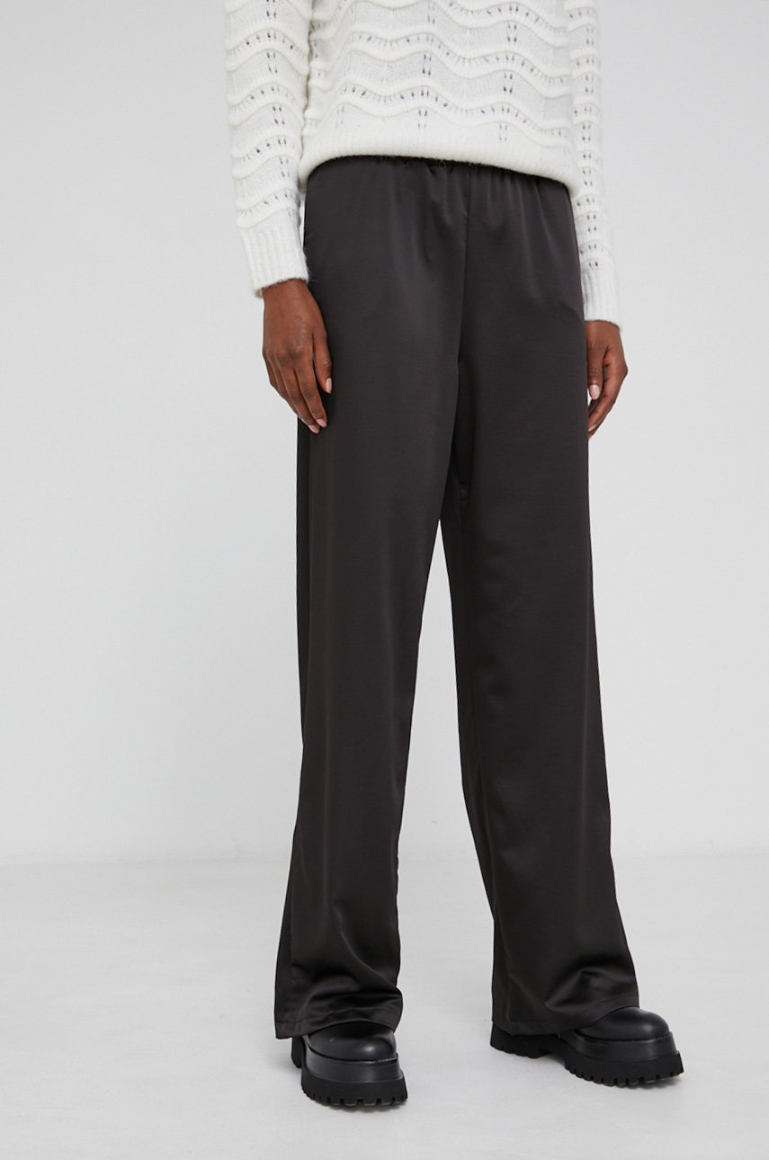 Панталон Answear Lab дамски в черно с широка каройка, с висока талия, Черен