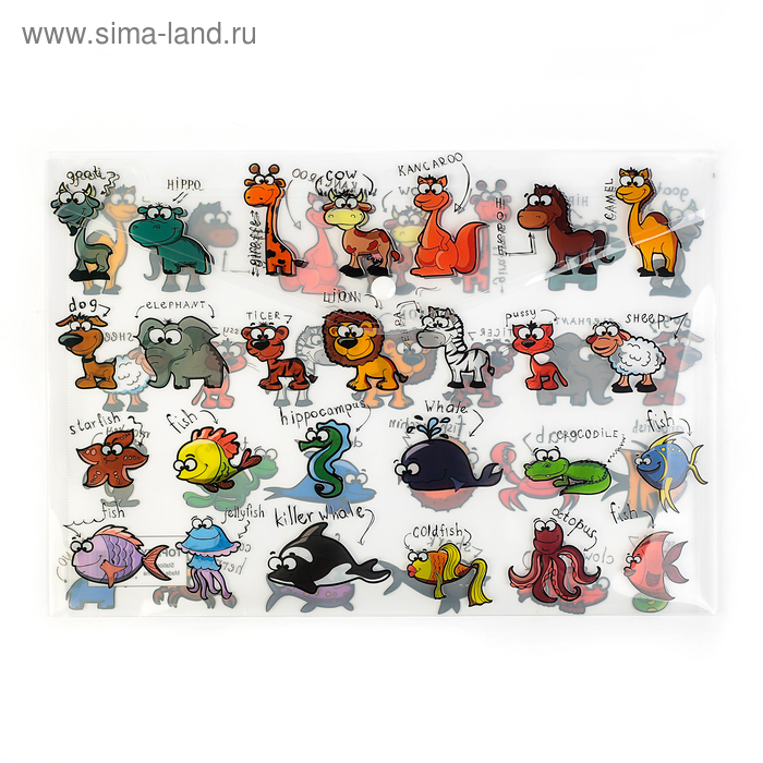 Папка-конверт на кнопке, А4, 180 мкм, "Зверушки", МИКС