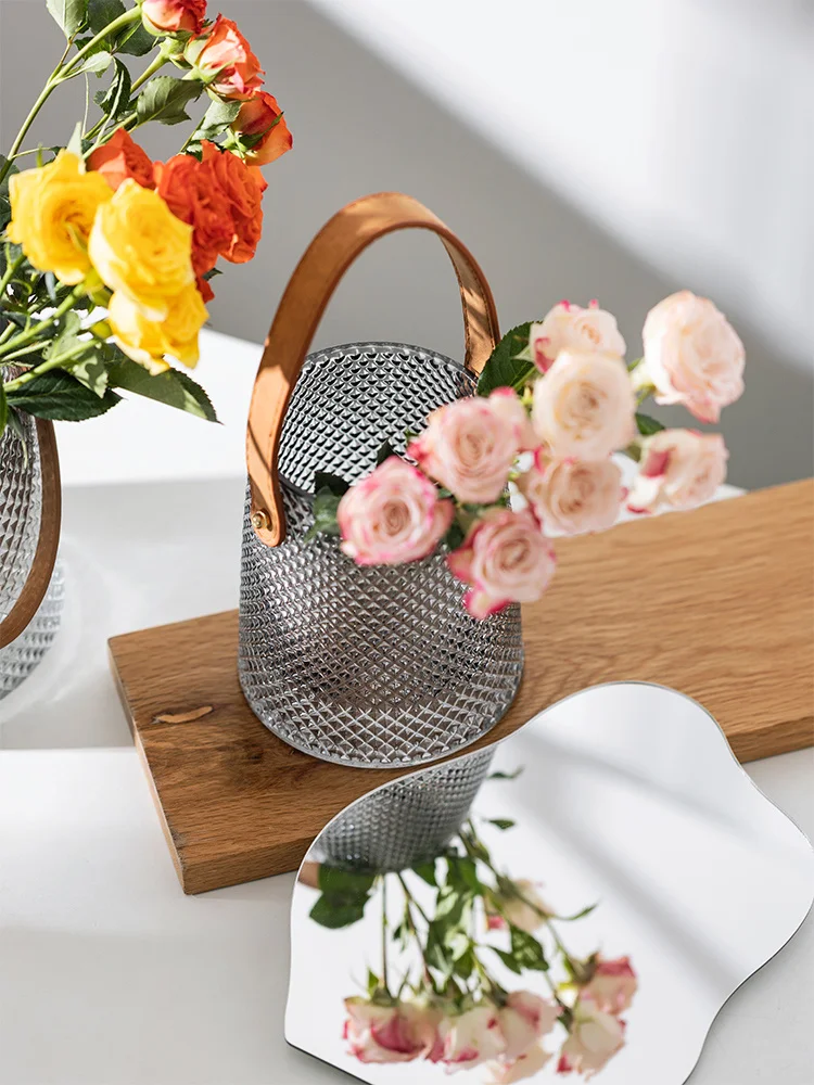 Light Luxury Decoration Portable Leather Glass Transparent and Creative Vase Desktop Living Room Flower Arrangement