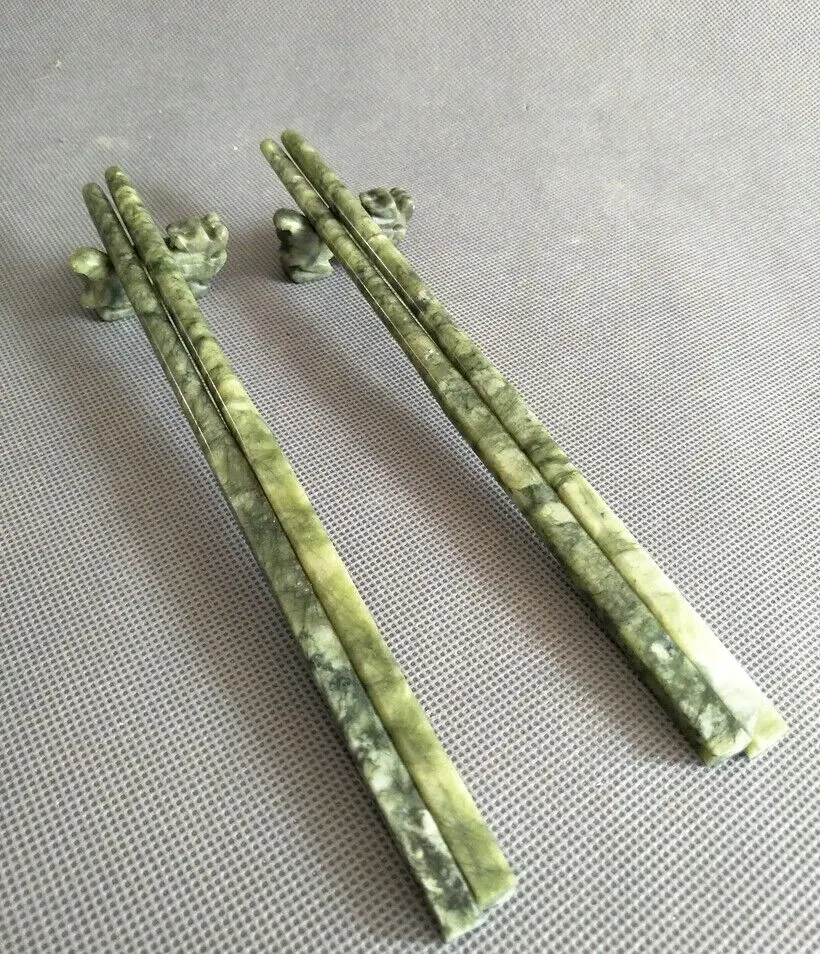 Пара изысканных китайских нефритовых палочек для еды ручной работы