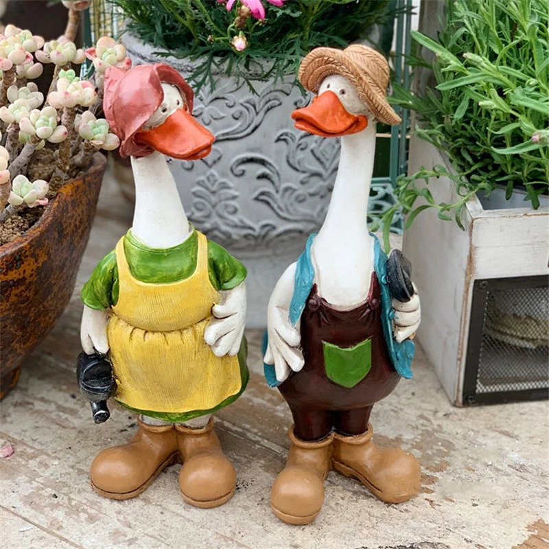 Пара искусственных Уток из смолы, садовая статуя, скульптура животного, украшение для пары, имитация пруда, Декор, ландшафт