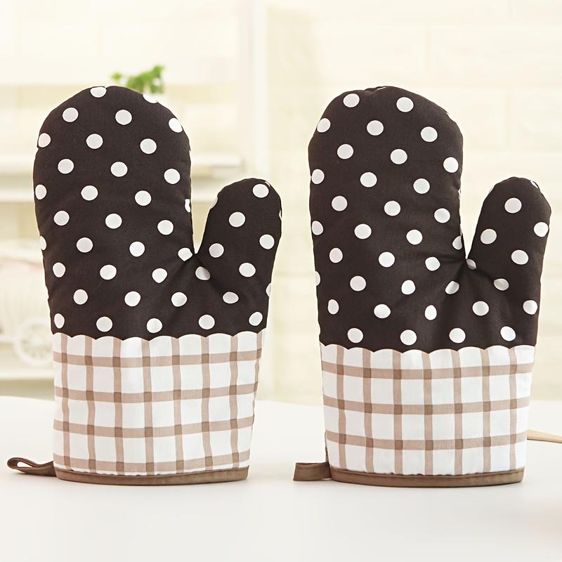 Пара 2 шт. утолщенных клетчатых теплоизоляционных перчаток для микроволновой печи в пасторальном стиле, перчатки для микроволновой печи, перчатки для защиты от ожогов чёрный