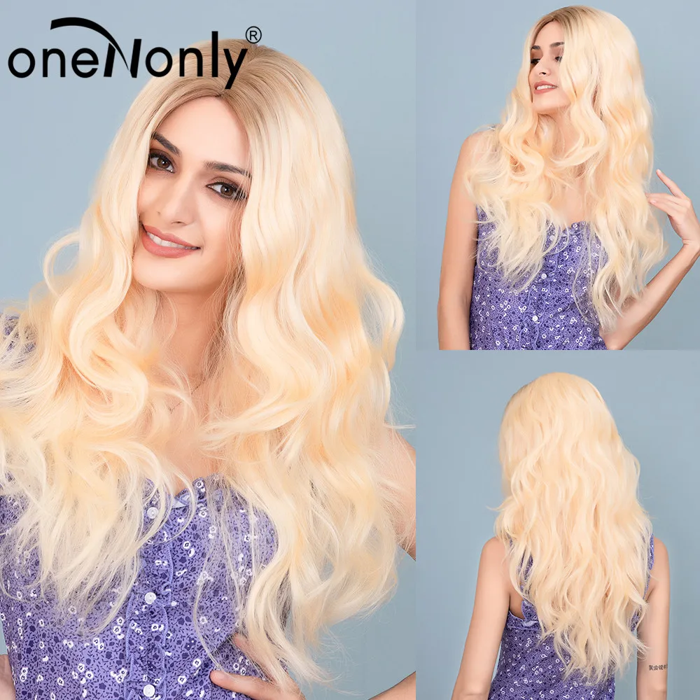 Парики женские oneNonly, коричневые, светлые, с эффектом деграде, с натуральными волнами, для косплея, термостойкие