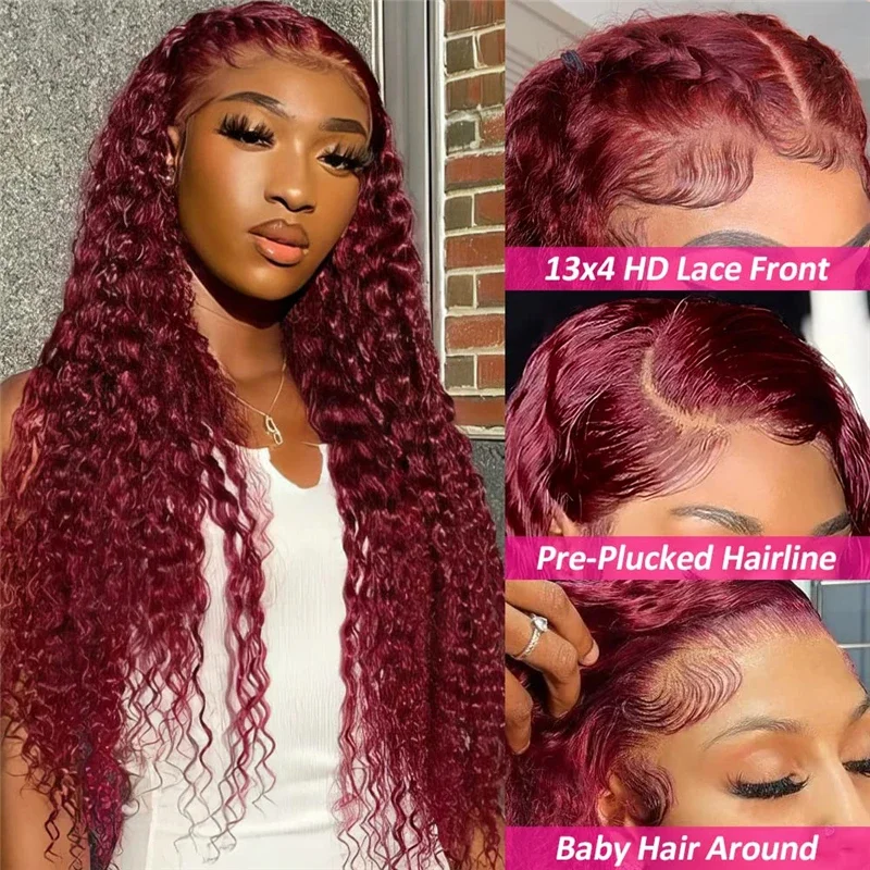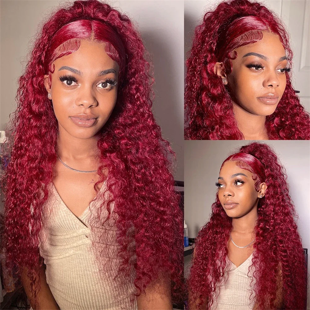 Парики из человеческих волос с глубокой волной 99j, бордовые, вьющиеся, красные, 13x 6, 32 дюйма