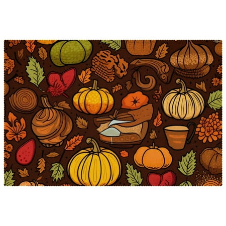 Placemats Set of 6 Non Slip Place Mats Dining Table Mats Autumn Harvesting with Pumpkin