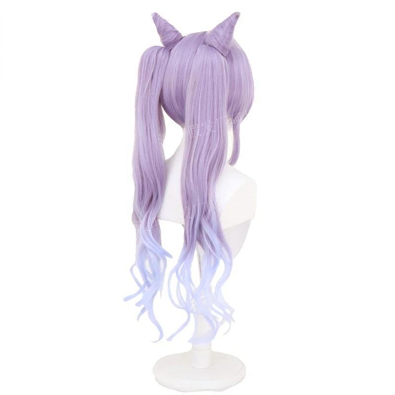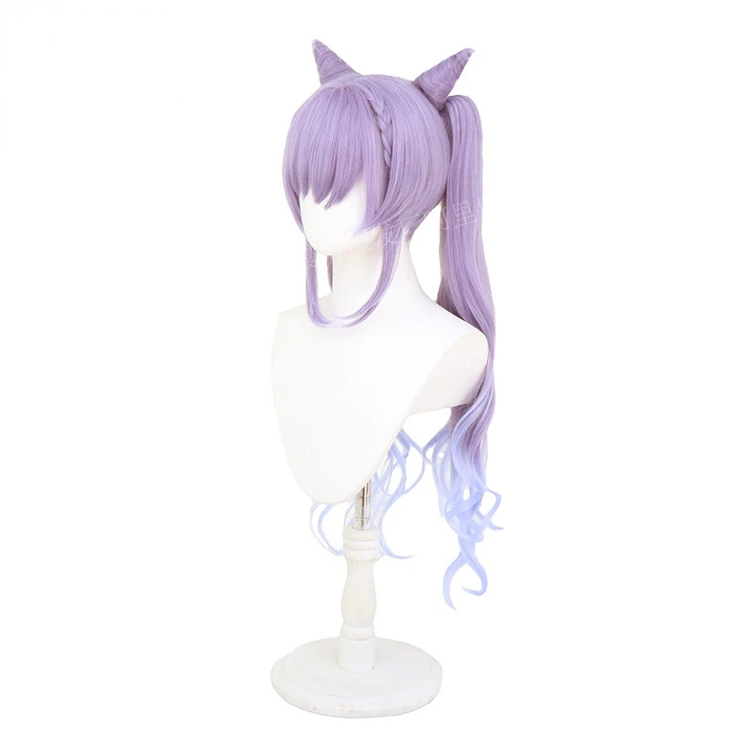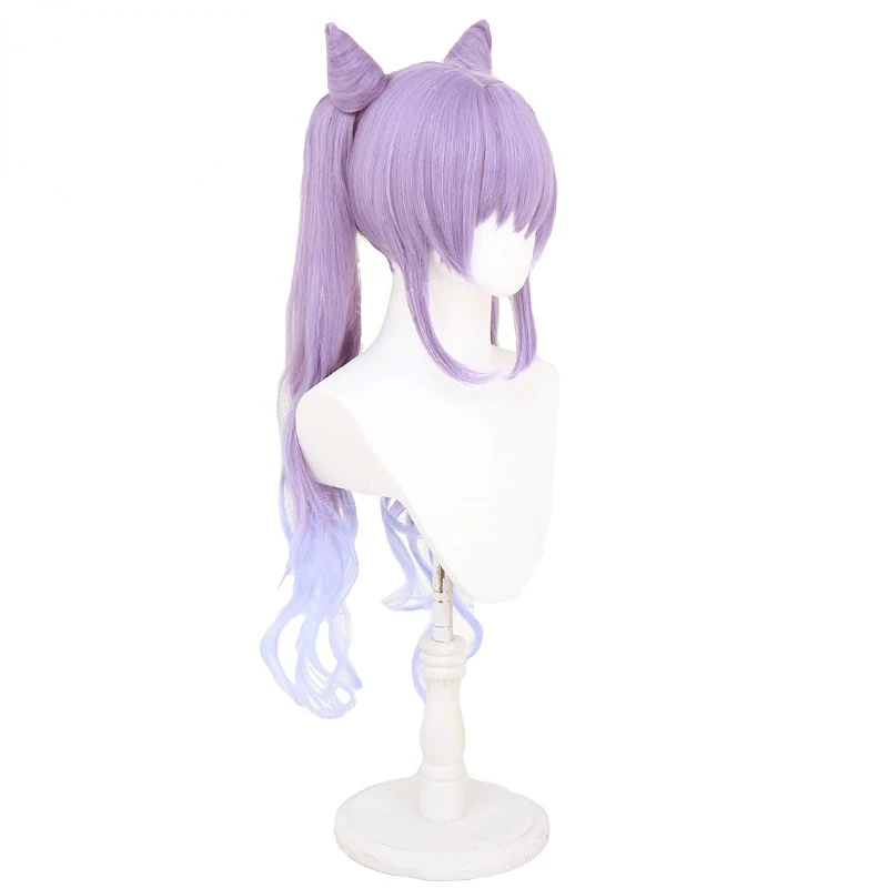 Парик для косплея аниме Genshin Impact Cosplay Keqing Ponytails, термостойкие синтетические волосы для Хэллоуина, для девочек