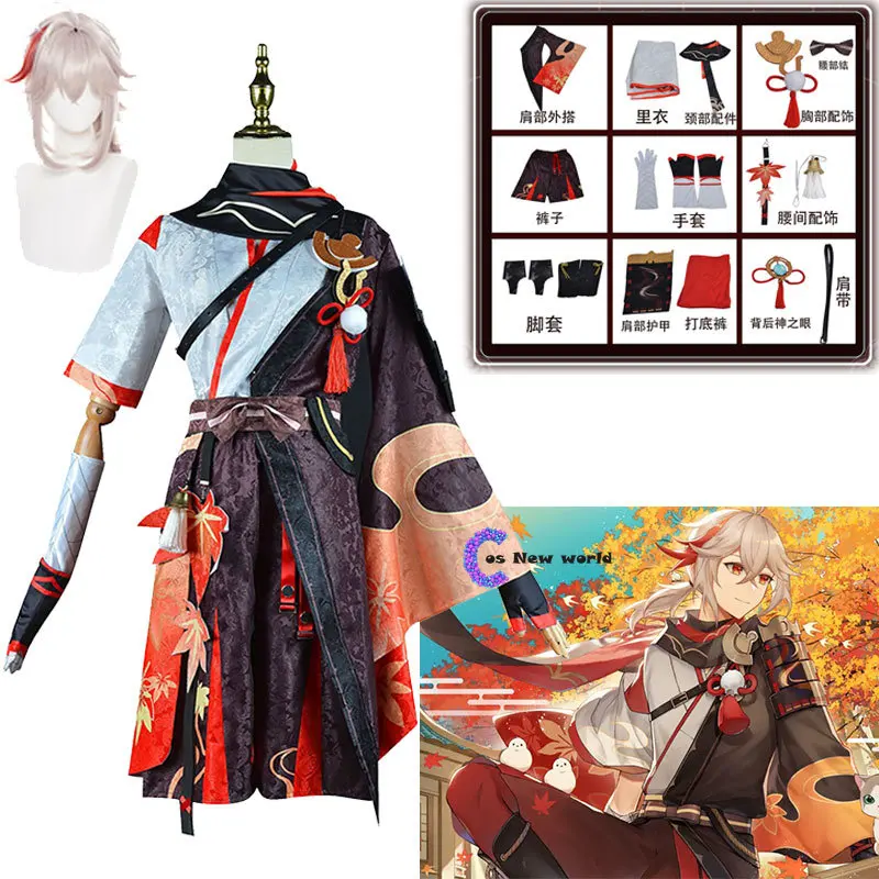 Парик для косплея геншина ударно каэдехара казуха, карнавал на Хэллоуин